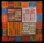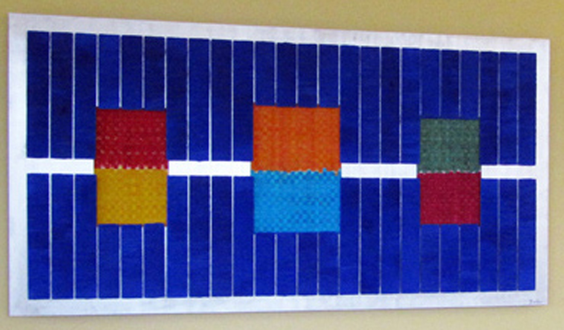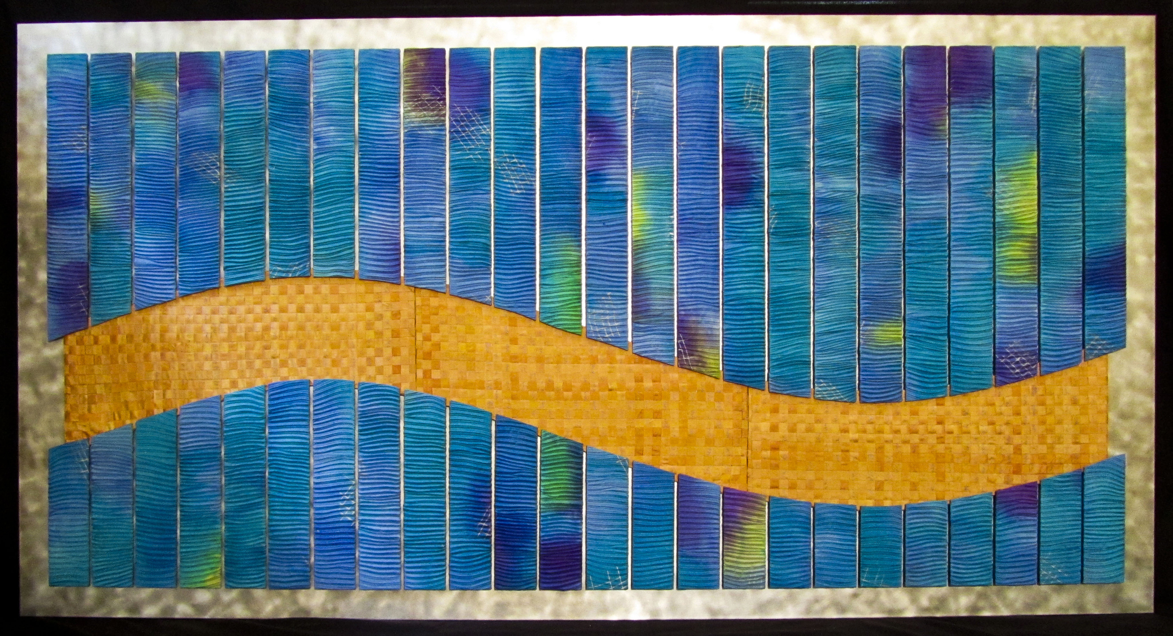 I then took those weavings and began to incorporate them into the final construction. Both constructions have hand-dyed and arashi pleated silk in panels that surrounded the weavings. The silk is mounted on textured aluminum. Each 70” x 36” construction contains 400 individual pieces.