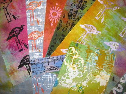 In celebration of all the surface design techniques presented in the August/September 2011 issue of Quilting Arts, we thought it would be fun to host our first-ever fabric swap. We invite you to get creative and pull out your dyes, paints, discharge pastes, stamps, stencils–you name it–and create your own set of four fat quarters to swap with someone else.