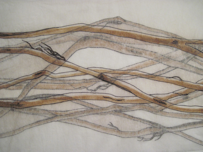 She has also selected her choice for the Juror’s award. Her choice is “Tree Bones” by Meegan McKiernan! Congratulations Meegan! About the piece Trisha said “This piece has a quiet resonance that really appeals to me. I find the soft voice compelling and the sophisticated sense of design makes it an interesting contrast of subject and materials.” Meegan will receive a $200 award. We are looking forward to seeing the piece in person!