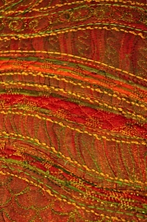 Donna Lee Dowdney, SDA Member, exhibits her fabric art at ART AT THE POINTE on August 3, 2013. Donna’s textile exhibit focuses on an invented microcosm of plants, and creatures such as tropical fish. Some fabric art techniques Donna uses include free motion stitching, cut-back appliqué, beading, and embroidery.