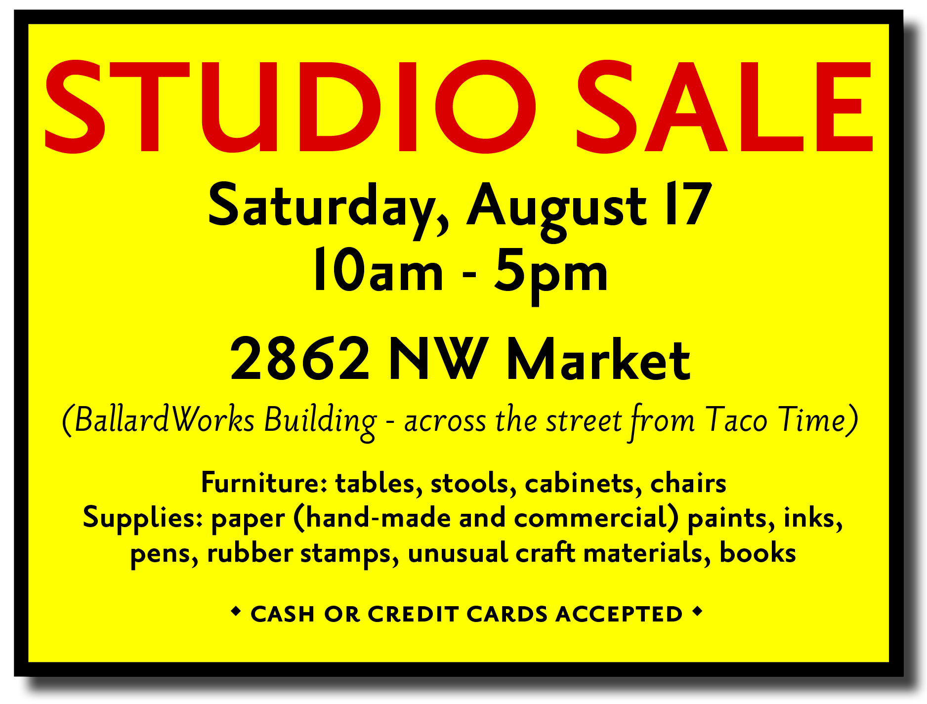 Pricing will be EXTREMELY reasonable. I have rented a new studio in Portland, but it’s not as large and I don’t want to move lots of stuff.