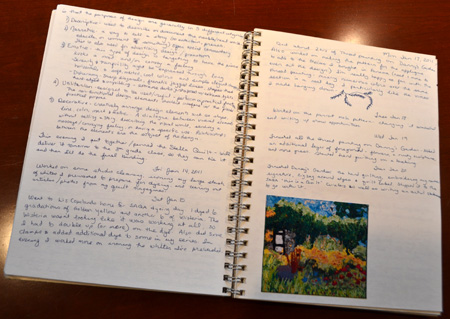 - Create and keep a “studio log” where the days accomplishments get recorded so you can track what actually does get done in the studio. Log the time you start, end and what you did. Don’t forget to include the time you spend thinking about making art even when you don’t get to work. Adapt as necessary to meet your own needs and style.
