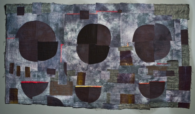 Barbara Houshmand’s piece Three x Three was accepted into “Fantastic Fibers” Fiber art show in Paducah, Kentucky. Barbara says, “This quilt is made of my hand dyed antique kimono silks, hand dyed vintage Italian silks and hand dyed cottons. I was inspired to make this quilt to maximize texture, color and character of each bit of cloth I used. The three bowls and three circles tend to bring order to a somewhat chaotic background.”