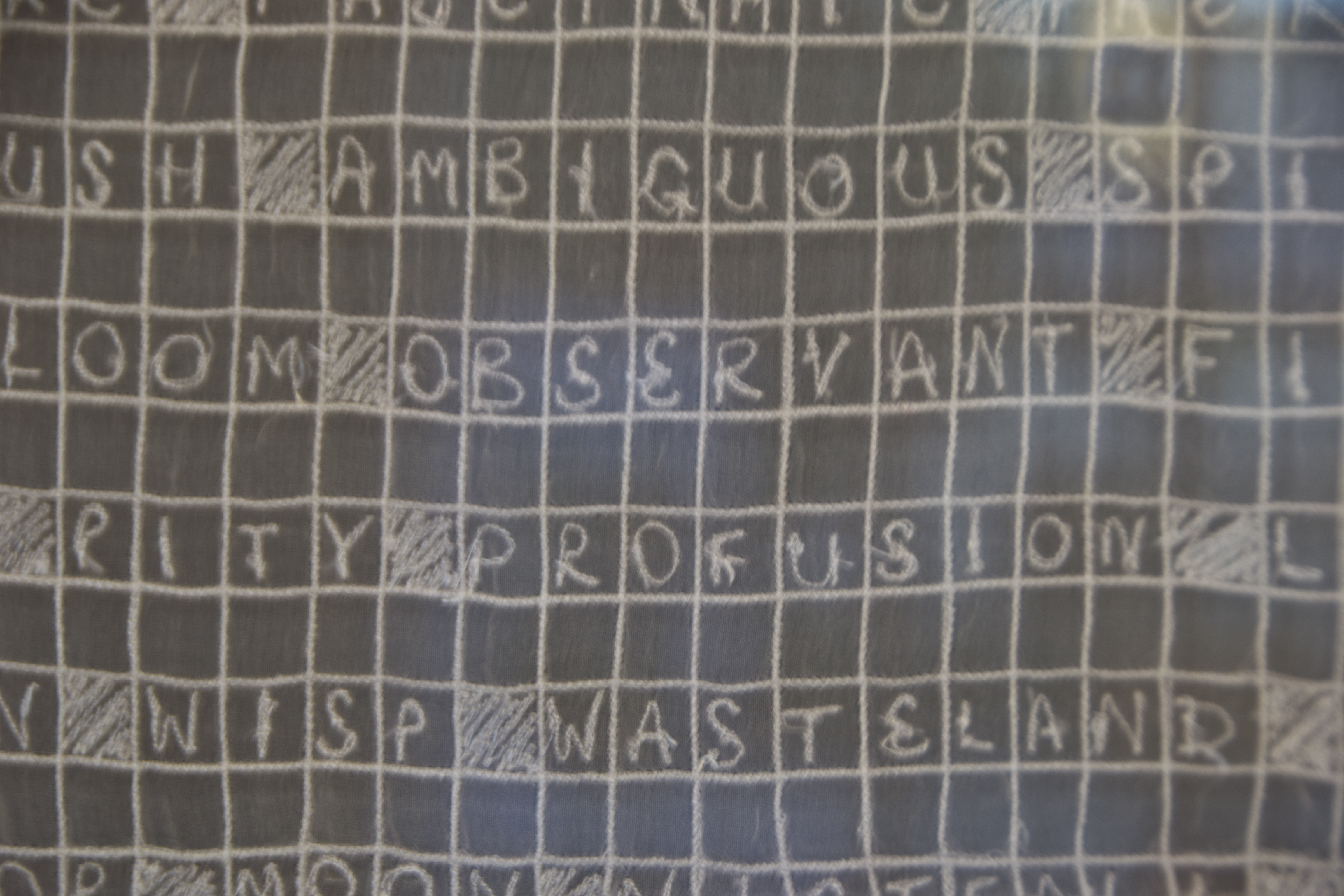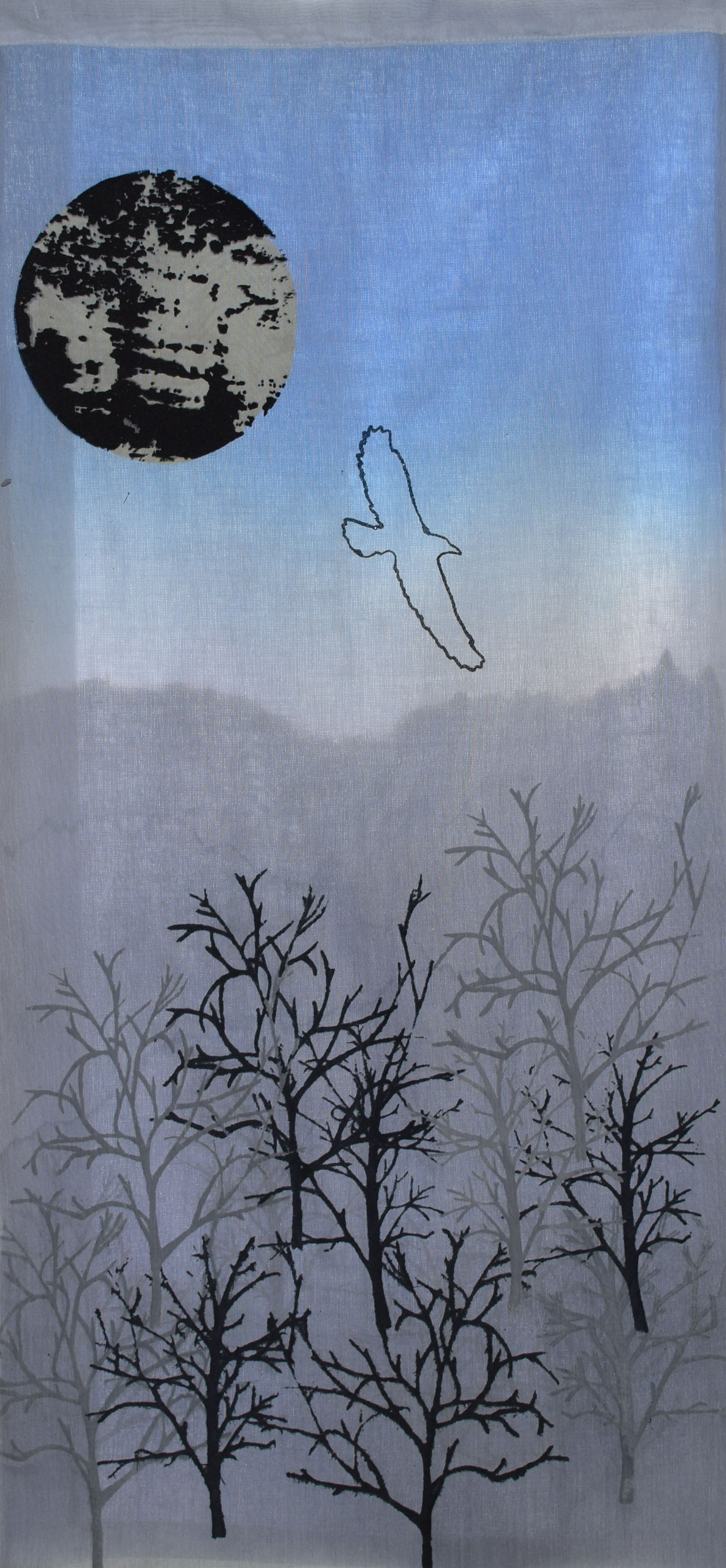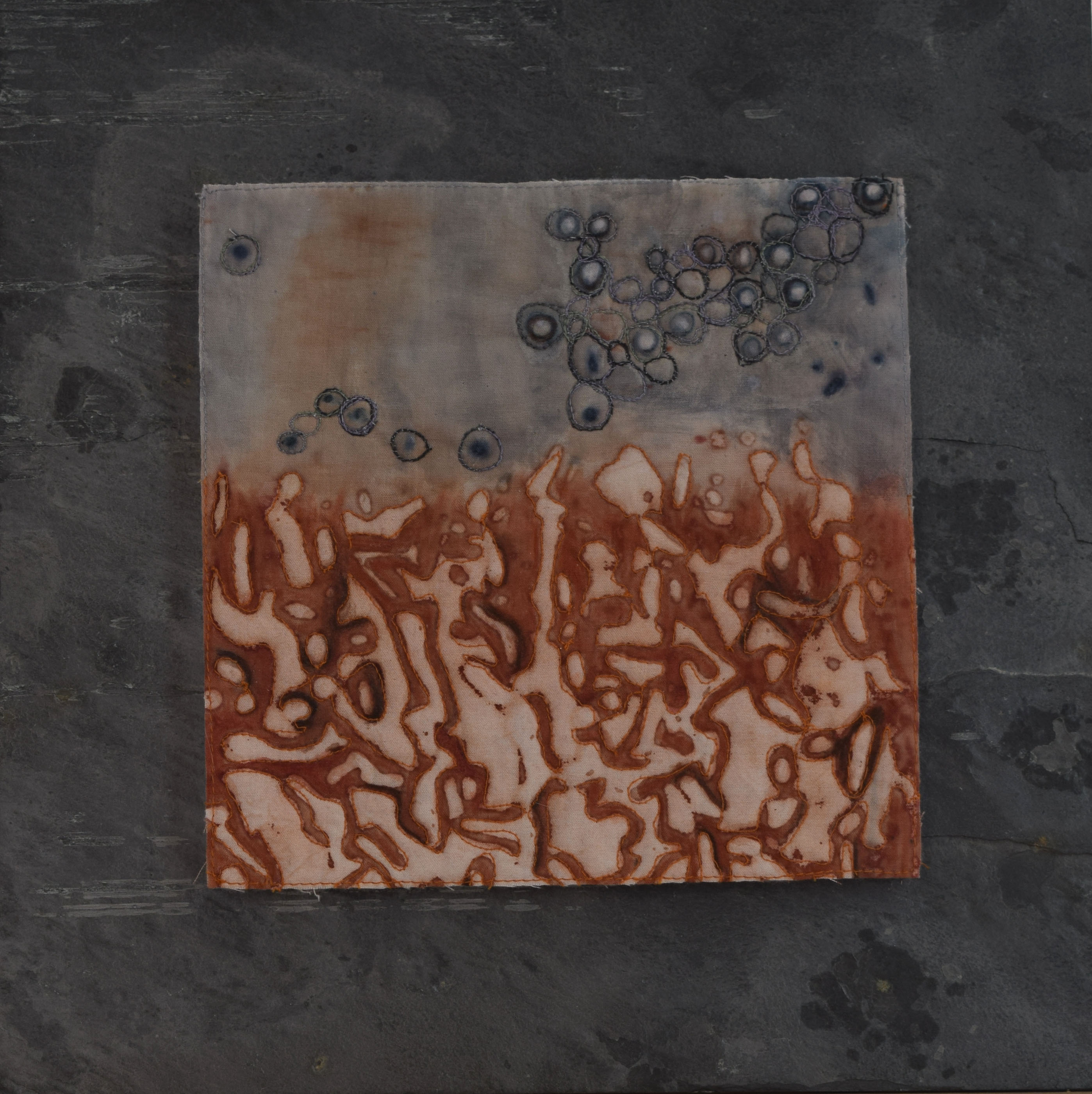 Cotton, dye, Inktense pencils, textile medium, Plexiglas, slate