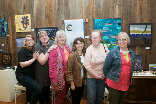 Some Members of Fiber19, a fiber group that meets monthly, at a show of Fiber19 work at the Sydney Art Gallery in port orchard, wa: Tre Taylor, Becky Wachtman, Louise Roby, Mary Auld, Deb Taylor, Barbara Matthews