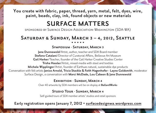 […] HomeAboutSurface Matters – March 2012Call for ArtSymposium FAQSymposium Registration – TicketsAll MembersMeetingsContact Bookmark the permalink. […]